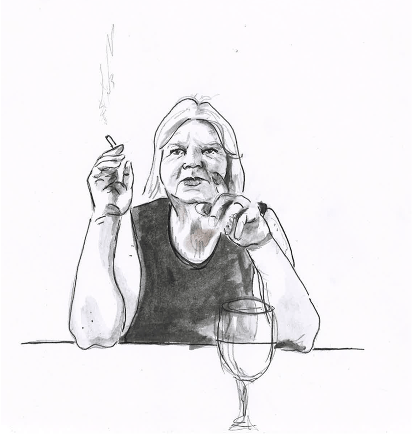 Ina’s accent was thicker than the smoke of the cigarettes that curled into the air. With a pointed finger she dissected modern society without fear of modern repercussions. Sitting tilted in her arm chair, leaning on her right elbow and holding the cigarette in the same hand.